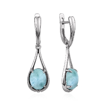 Серьги для женщин из серебра 925 пробы с ларимарами из коллекции Уральские самоцветы артикул 2340Л16586 от компании KRASNOE