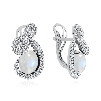 Серьги для женщин из серебра 925 пробы с лунным камнем,ситаллами,,фианитами из коллекции Уральские самоцветы артикул 2340931793л от компании KRASNOE