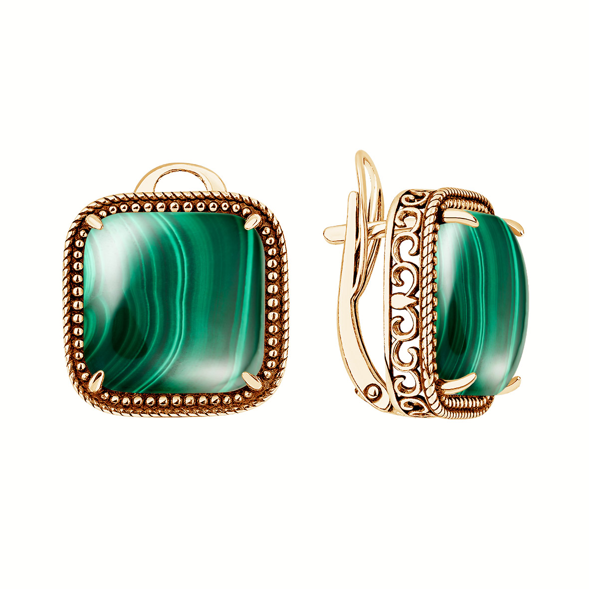 Серьги для женщин из серебра 925 пробы с малахитами из коллекции Династия артикул 2320385157 от компании KRASNOE