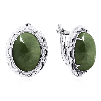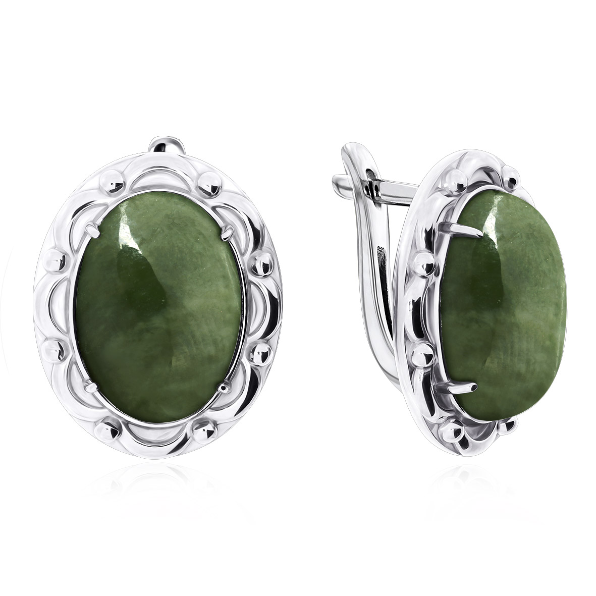 Серьги для женщин из серебра 925 пробы с нефритами из коллекции Уральские самоцветы артикул 2310355116 от компании KRASNOE