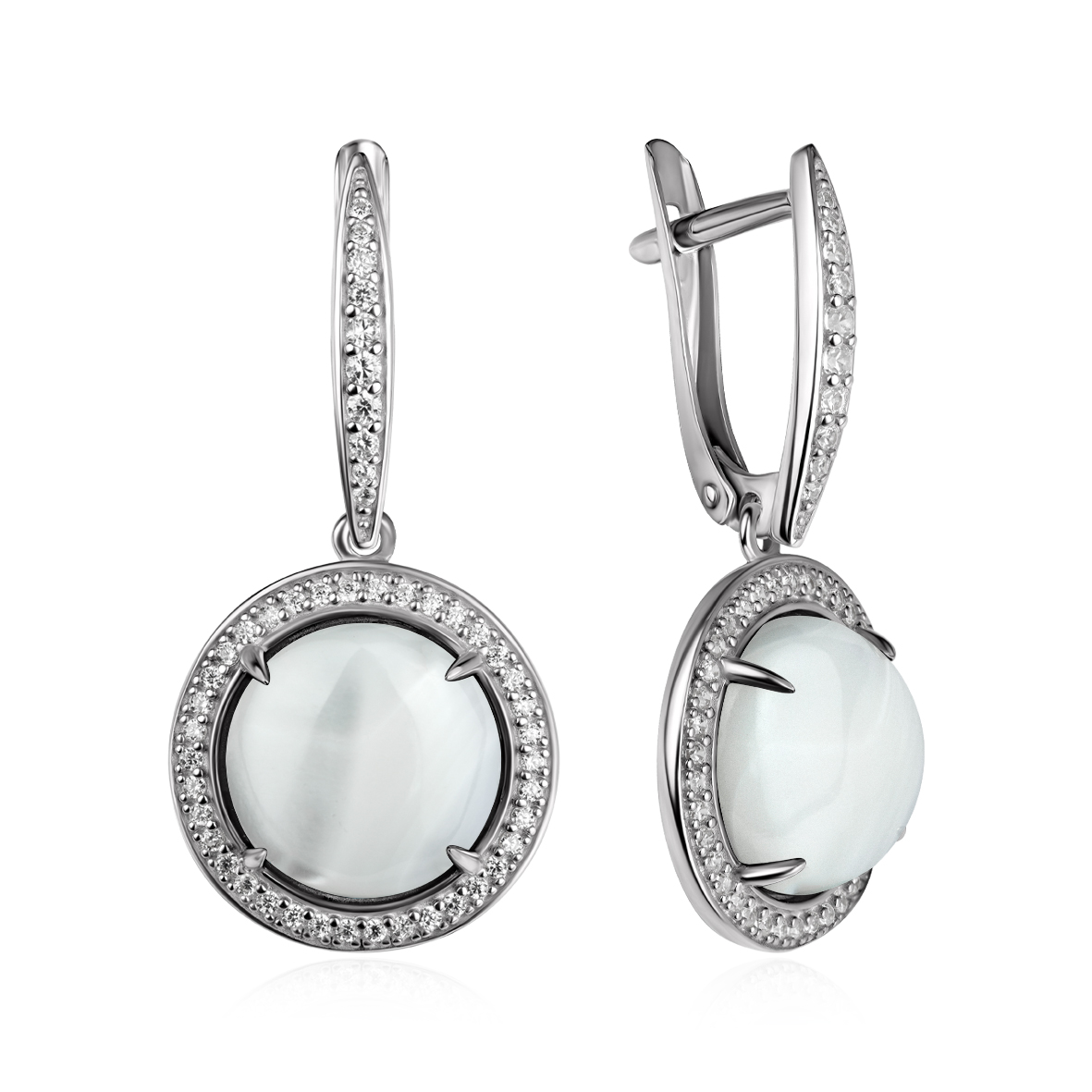 Серьги для женщин из серебра 925 пробы с перламутрами,фианитами из коллекции New look артикул 2340496386л от компании KRASNOE