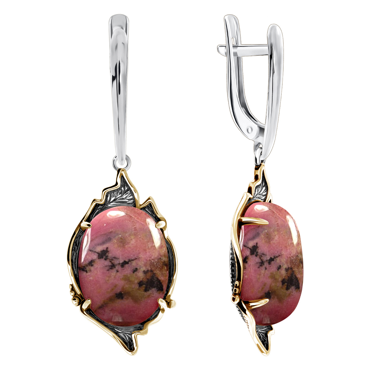 Серьги для женщин из серебра 925 пробы с родонитами из коллекции Flowers артикул 2317455171 от компании KRASNOE
