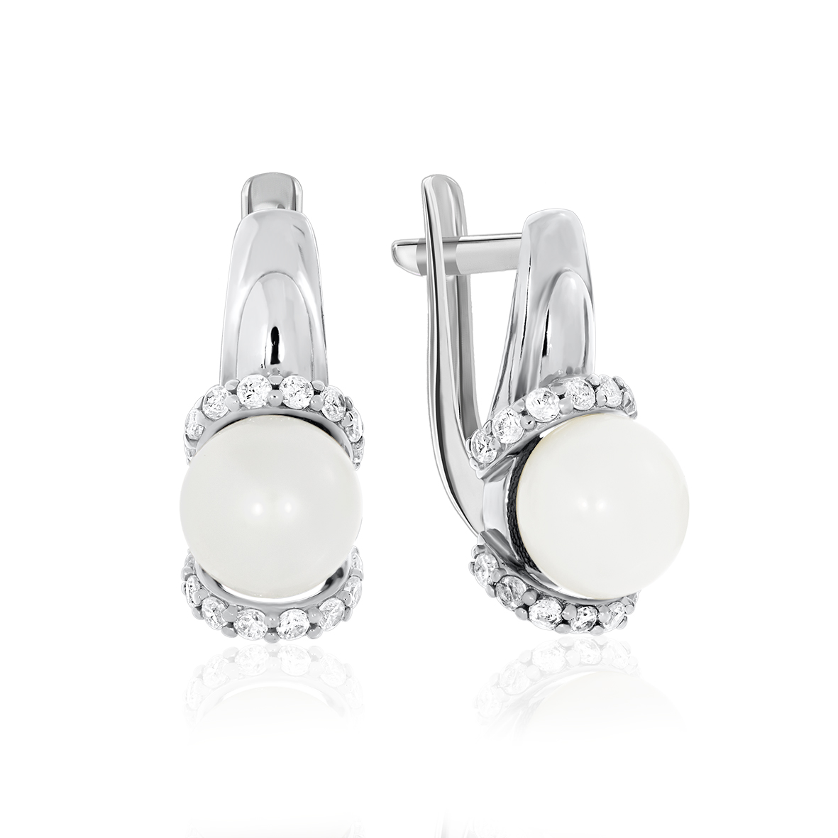 Серьги для женщин из серебра 925 пробы с жемчугами из коллекции Афродита артикул 2340050820-1 от компании KRASNOE
