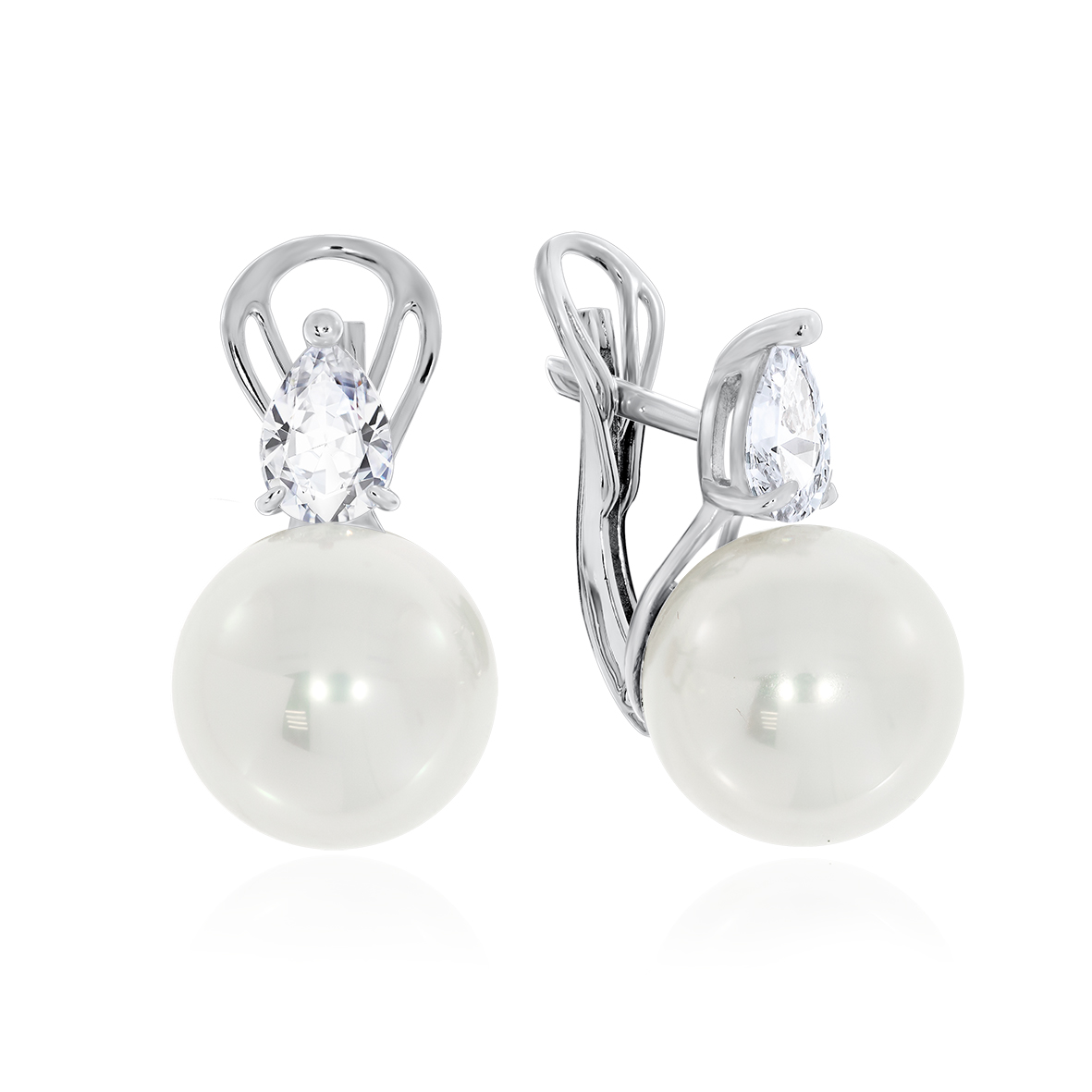 Серьги для женщин из серебра 925 пробы с жемчугами,фианитами из коллекции Дуэт артикул 2340241396 от компании KRASNOE