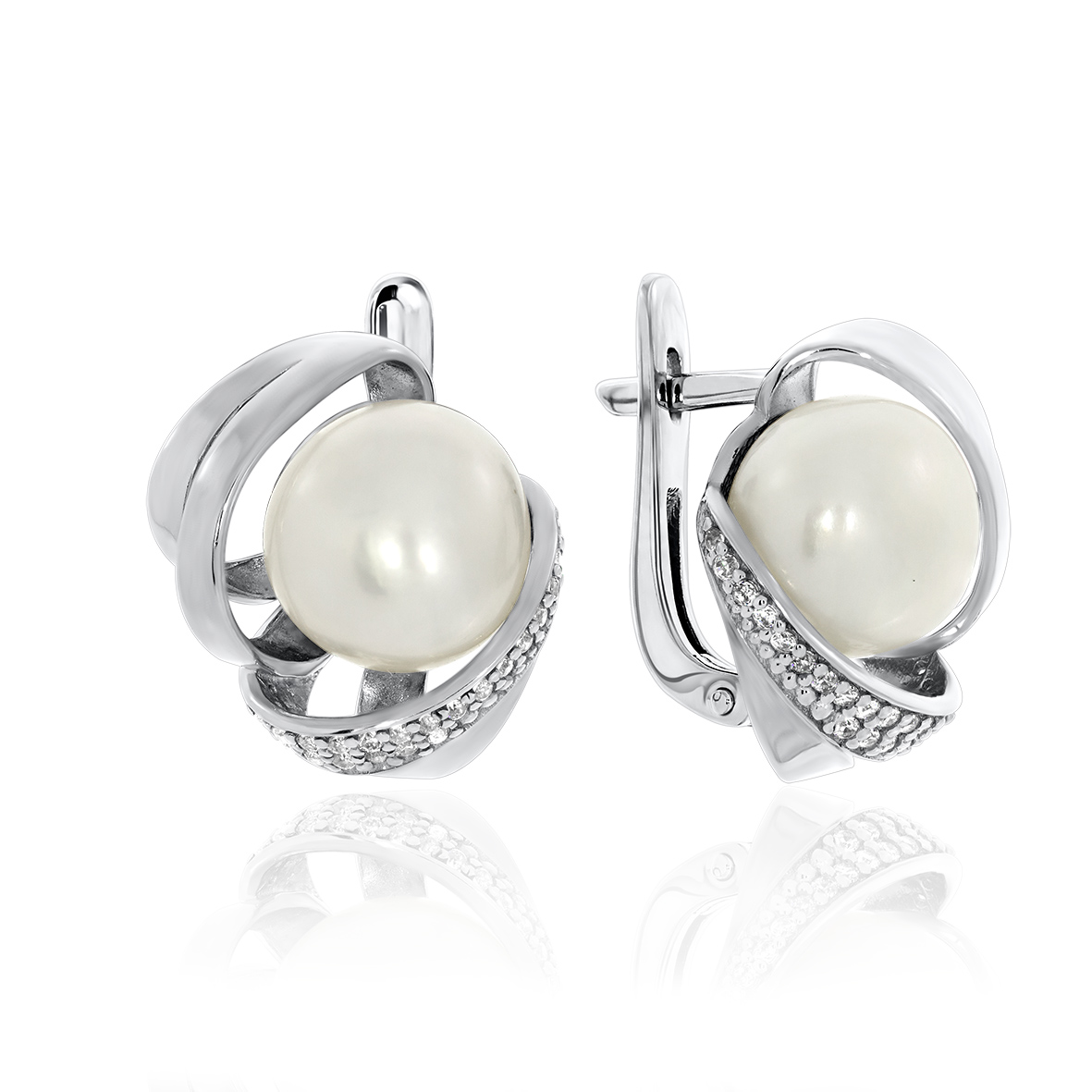 Серьги для женщин из серебра 925 пробы с жемчугом,фианитами из коллекции Афродита артикул 2340050861 от компании KRASNOE
