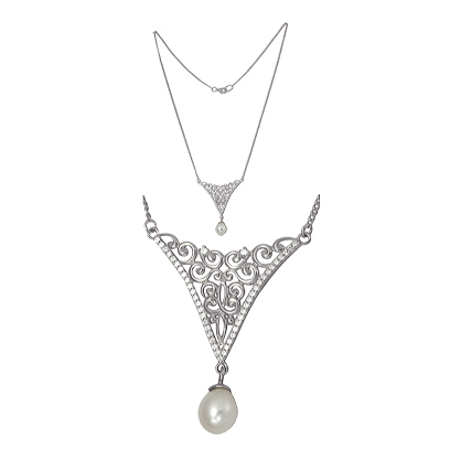 Колье для женщин из серебра 925 пробы с жемчугом,фианитами артикул 3883032483л-40 от компании Алмаз-Холдинг