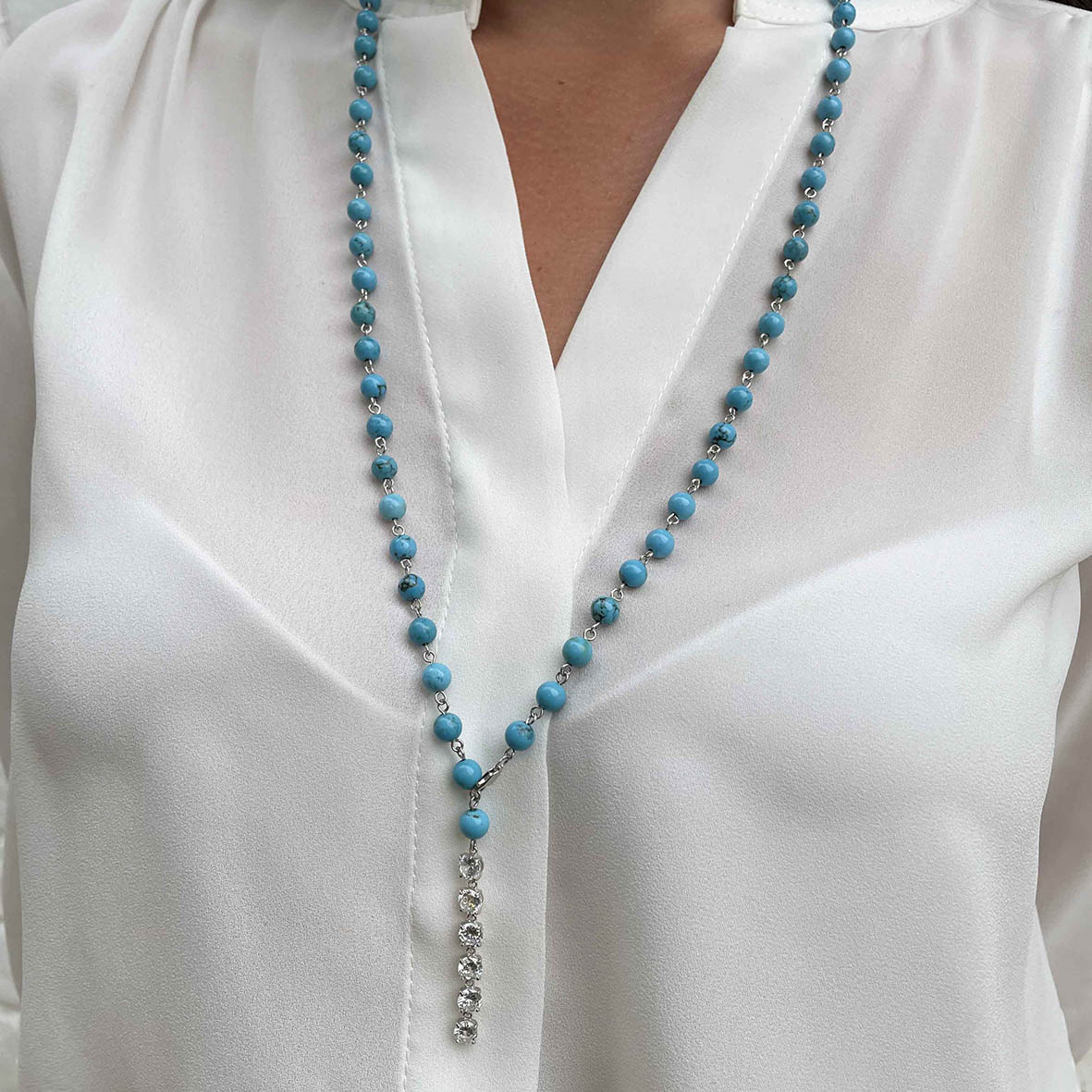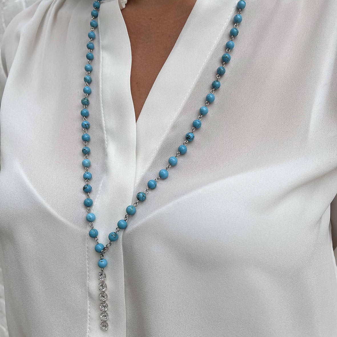 Колье для женщин из серебра 925 пробы с фианитами,бирюзой из коллекции Perfection артикул 8340316210-2-75 от компании KRASNOE