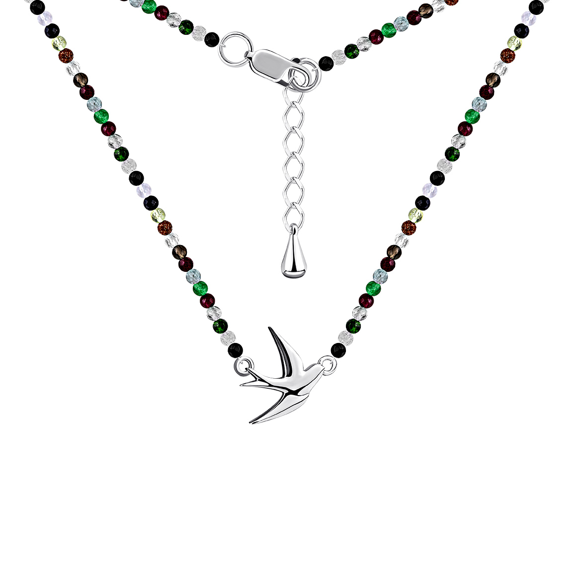 Колье для женщин из серебра 925 пробы с агатами из коллекции Ласточка артикул 8340394876-1-45 от компании KRASNOE