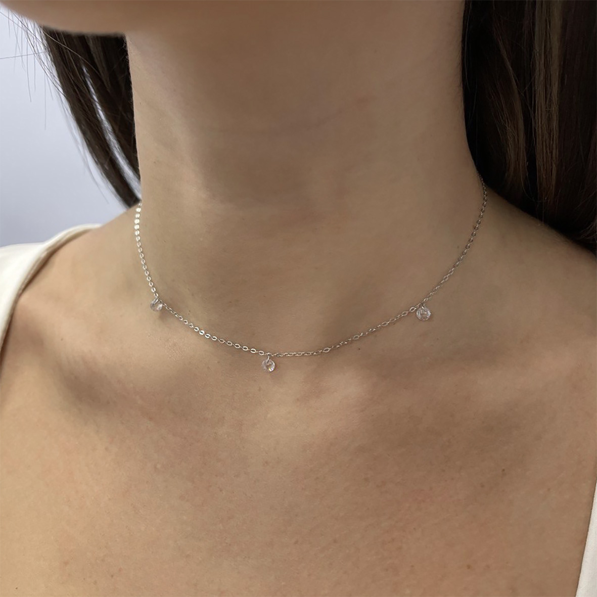 Колье для женщин из серебра 925 пробы с фианитами из коллекции Невесомость артикул 8340203071-38 от компании KRASNOE