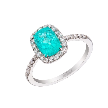 турмалин Параиба невероятно светится, буквально изнутри, навевая голубое свечение, а благодаря огранке унося в далекие лазурные дали. Турмалин Параиба - наилучший экземпляр Турмалина, редкий и особенный. Тот случай, когда сложность форм, геометричность дизайна - абсолютно лишние детали, ведь Параиба и мелкие бриллианты - все что нужно для создания уникального ювелирного шедевра.