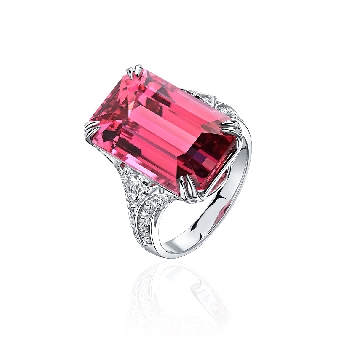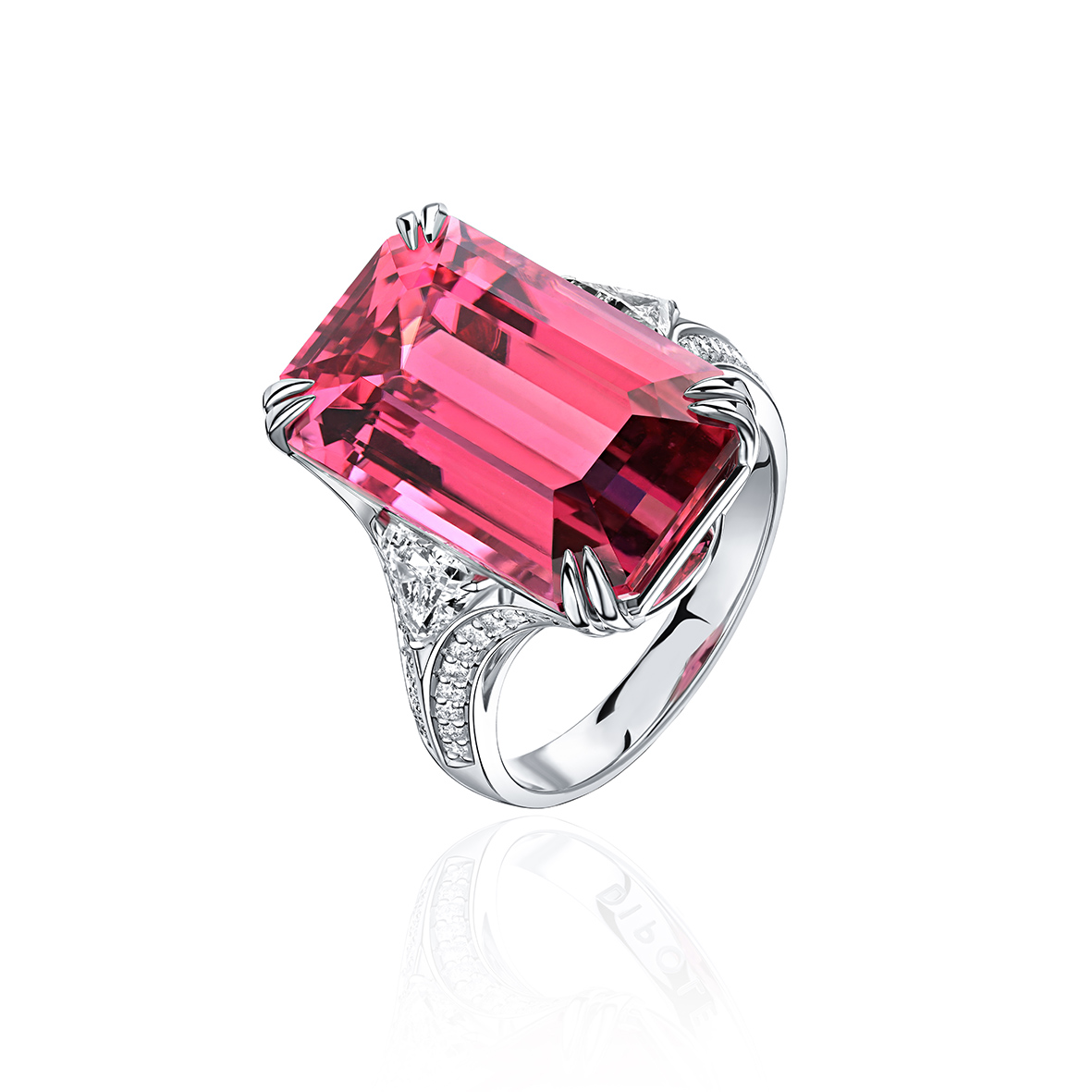 Розовый турмалин - это настоящий эффект "ВАУ". Никто не догадается, каким шикарным камнем вы обладаете, с первого взгляда. Цвет невероятно глубокий, граничащий с ярким цветом фукси. Это изделие- настоящий разрыв шаблонов классических премиальных украшений, ведь оно и близко не похоже ни на какое другое изделие. Особенность кольца подчеркнута яркой шинкой в россыпи лучших друзей всех представительниц женского пола - бриллиантов