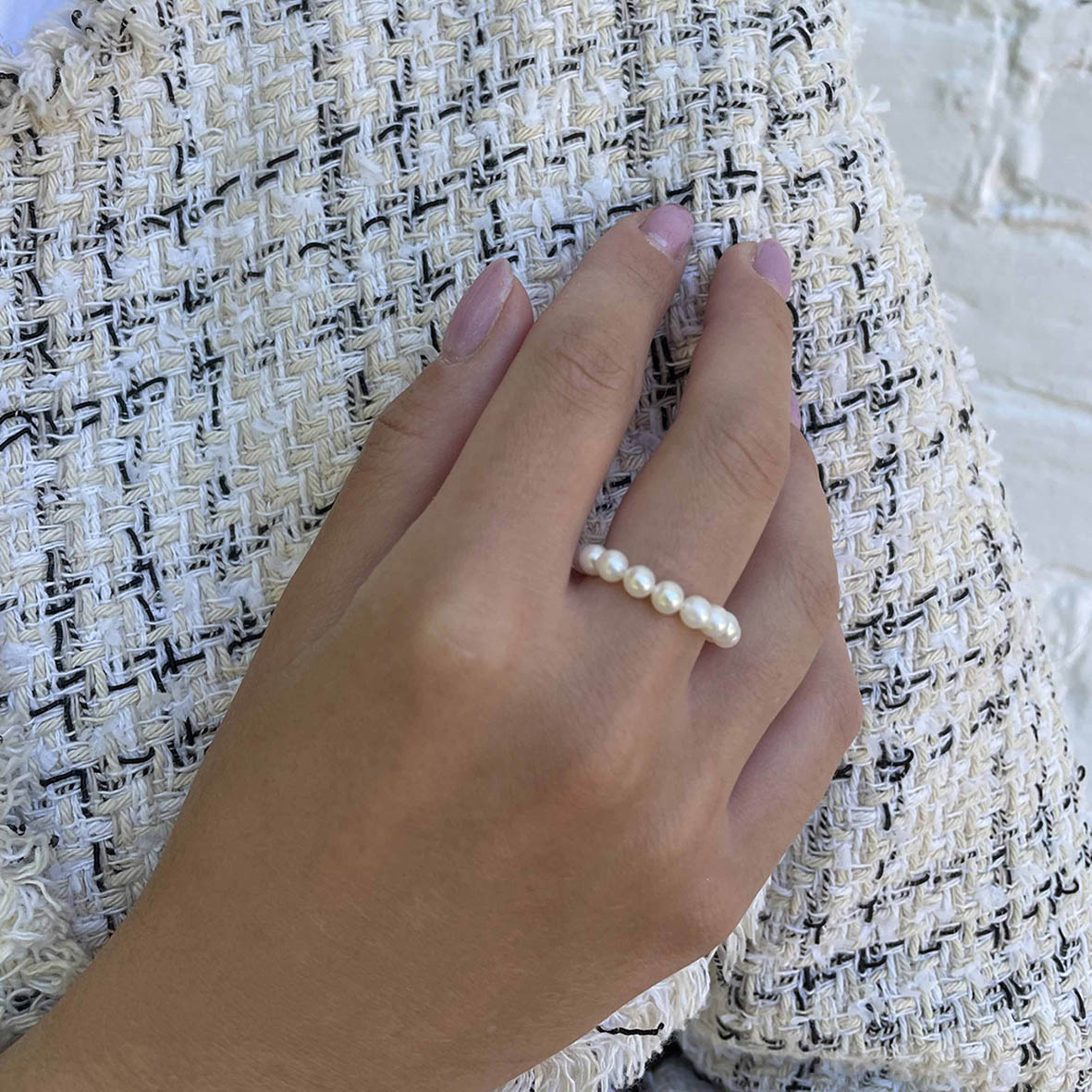 Кольцо из натурального пресноводного жемчуга высшего качества. Основа жемчужного кольца - прочная эластичная силиконовая нить, которая тянется, таким образом, что размер кольца варьируется от 16-18. Жемчужины тщательно подобраны один к одному. Узелок кольца деликатно спрятан под бусину. Кольцо из натурального жемчуга прекрасно подойдет на свидание, на мероприятие, на работу, на день рождения, в отпуск, на каждый день. На весну и лето - идеально! Кольца удобно креативно сочетать друг с другом и с фаланговыми кольцами. В коллекцию ювелирного бренда KRASNOE входят колье-чокеры и галстуки, дорожки, пусеты, джекеты, серьги-трансформеры. Размер вставки жемчуг пресноводный 3*4