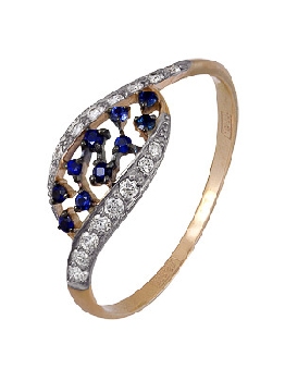 Кольцо из золота 585 пробы с сапфирами,бриллиантами артикул 11536012 от компании Алмаз-Холдинг