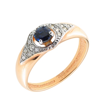 Кольцо для женщин из золота 585 пробы с сапфиром,бриллиантами артикул 12538779 от компании Алмаз-Холдинг