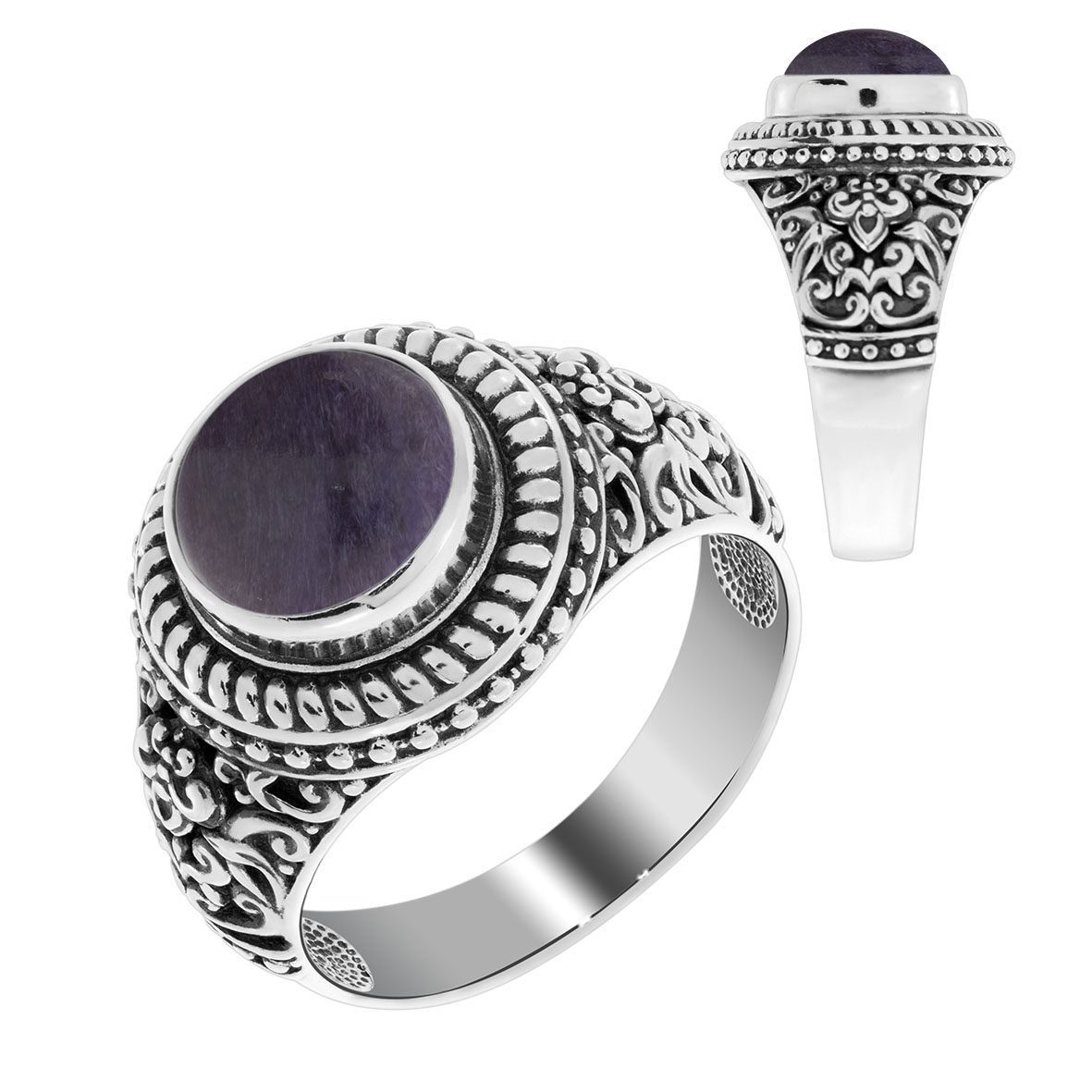 Кольцо для женщин из серебра 925 пробы с чароитом из коллекции Династия артикул 1310461526-1 от компании KRASNOE