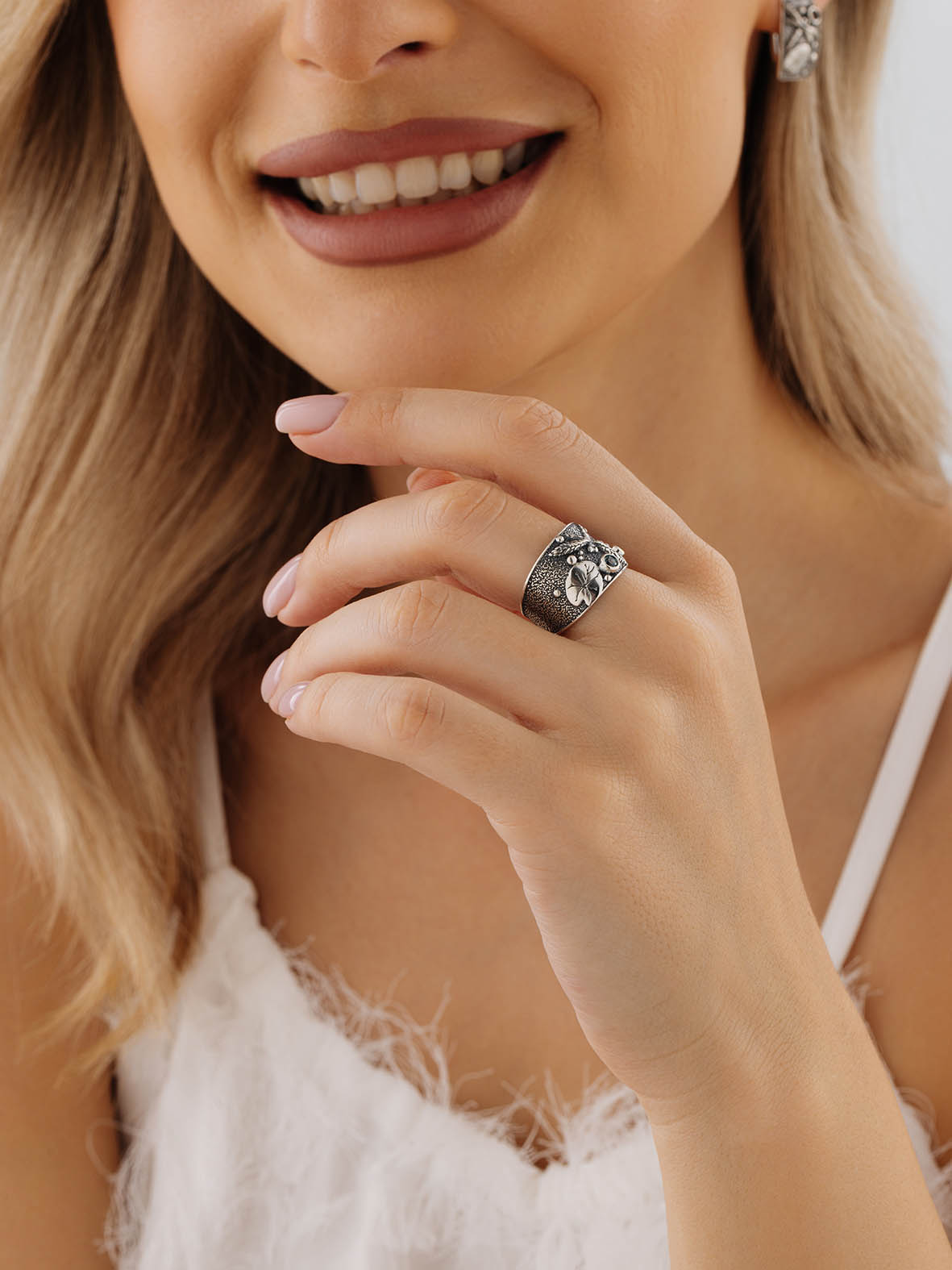 Кольцо для женщин из серебра 925 пробы с ситаллами из коллекции Nature артикул 1310881767-78 от компании KRASNOE
