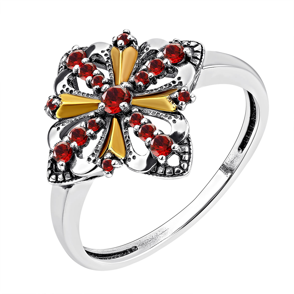 Кольцо для женщин из серебра 925 пробы с гранатами из коллекции Столица (рабочее название) артикул 1317151575 от компании KRASNOE