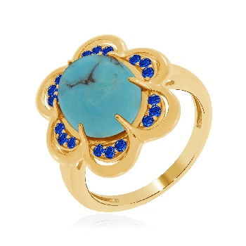 Кольцо для женщин из серебра 925 пробы с бирюзой,ситаллами из коллекции Уральские самоцветы артикул 1320311882л от компании KRASNOE