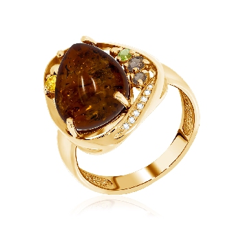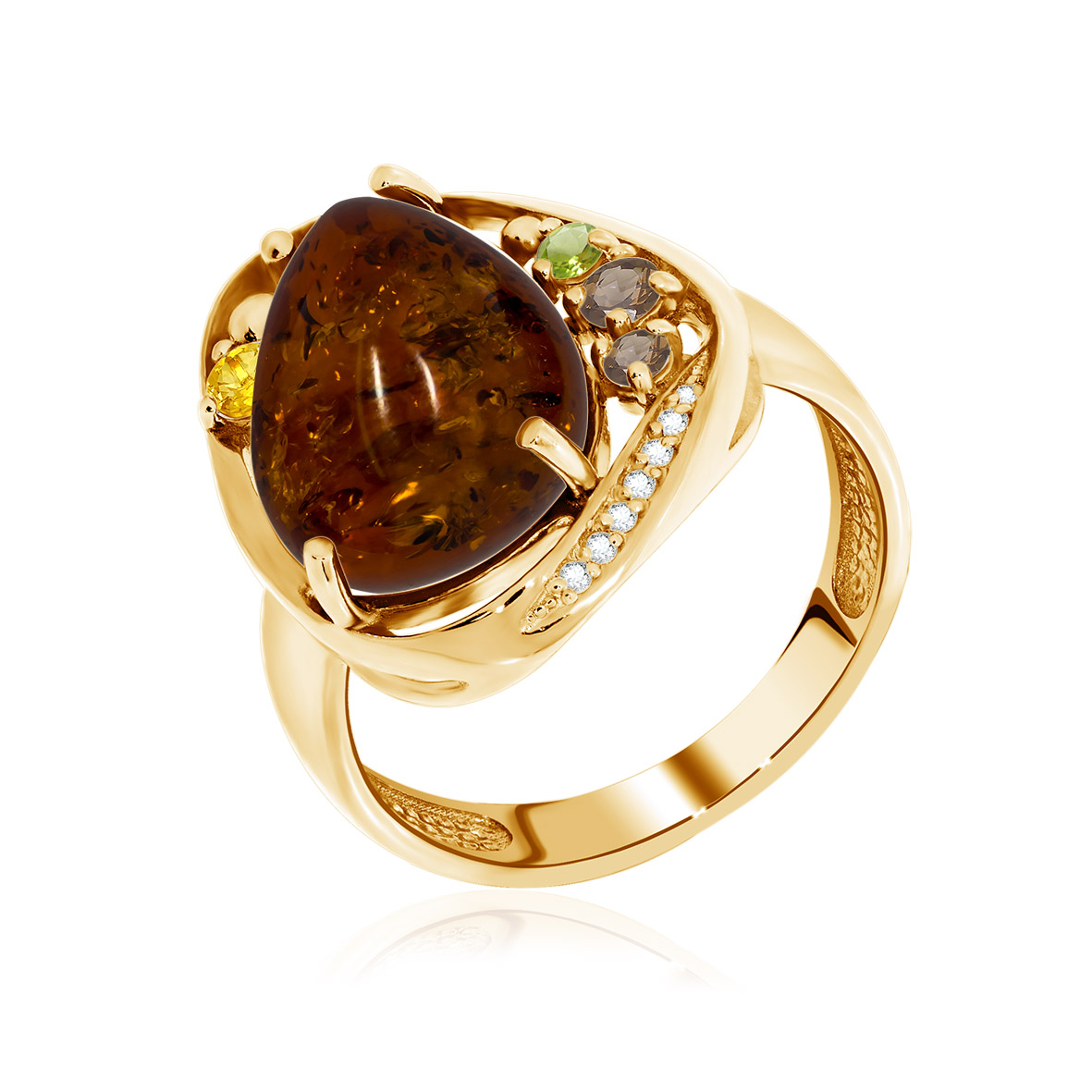 Кольцо для женщин из серебра 925 пробы с ситаллом,янтарём,,фианитами из коллекции Сладкая история артикул 1320861171-42 от компании KRASNOE