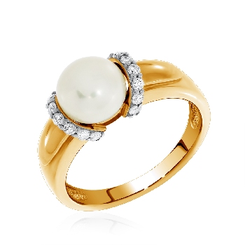Кольцо для женщин из серебра 925 пробы с жемчугом,фианитами из коллекции Афродита артикул 1329050820л от компании KRASNOE