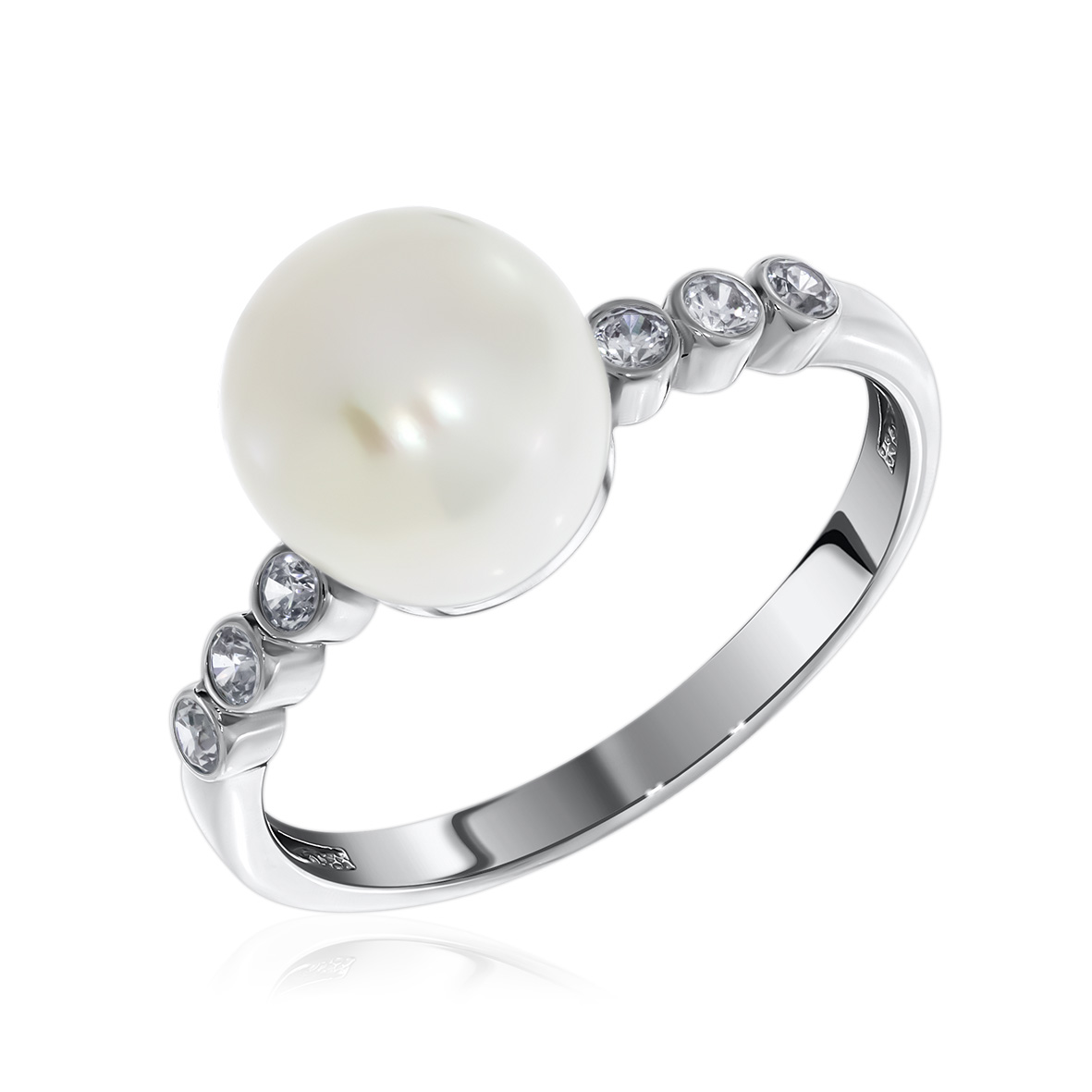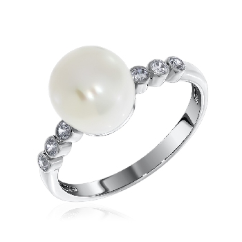 Кольцо для женщин из серебра 925 пробы с жемчугом,фианитами из коллекции Афродита артикул 1340050800л от компании KRASNOE