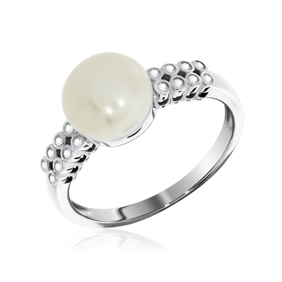 Кольцо для женщин из серебра 925 пробы с жемчугом,фианитами из коллекции Афродита артикул 1340050805л-3 от компании KRASNOE