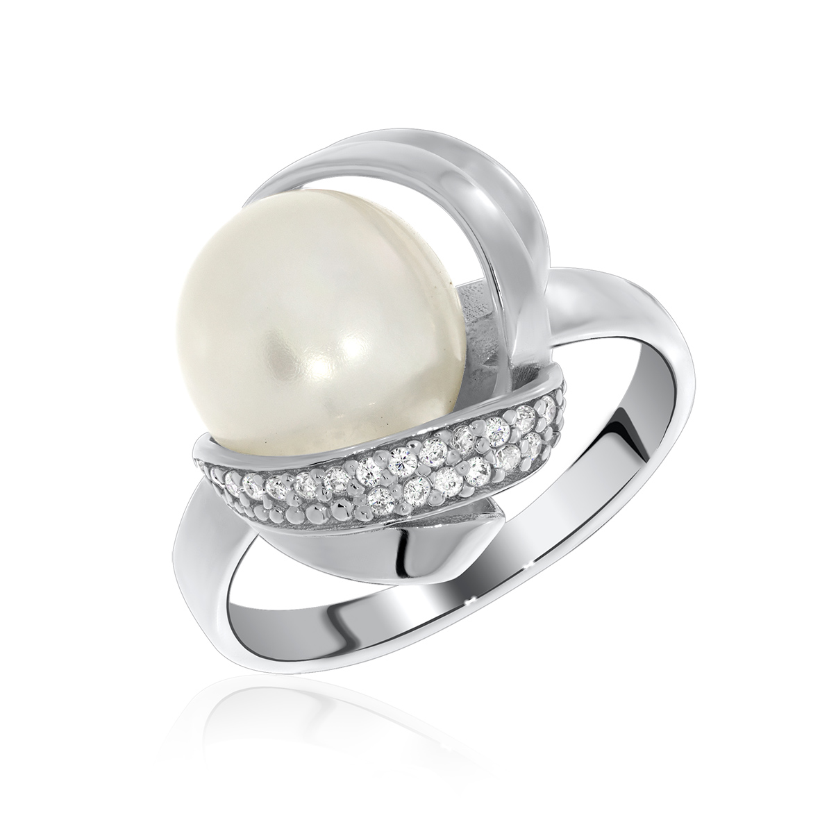 Кольцо для женщин из серебра 925 пробы с жемчугом,фианитами из коллекции Афродита артикул 1340050861 от компании KRASNOE