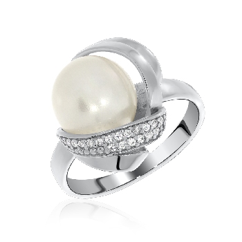Кольцо для женщин из серебра 925 пробы с жемчугом,фианитами из коллекции Афродита артикул 1340050861л от компании KRASNOE