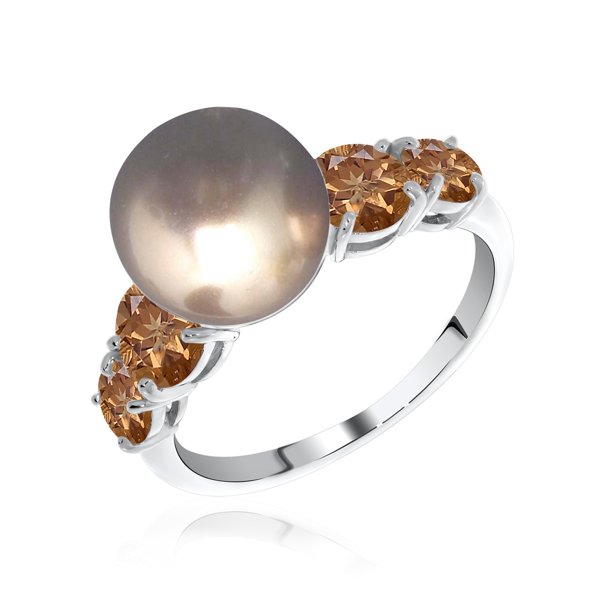 Кольцо для женщин из серебра 925 пробы с жемчугом,фианитами из коллекции Шанель артикул 1340240869-43 от компании KRASNOE
