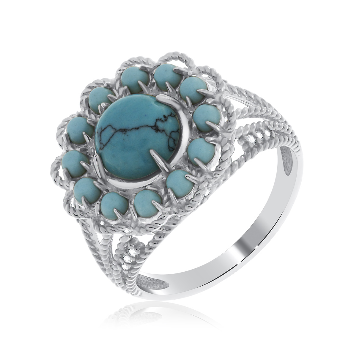 Кольцо для женщин из серебра 925 пробы с бирюзой,фианитами из коллекции Уральские самоцветы артикул 1340271883л от компании KRASNOE