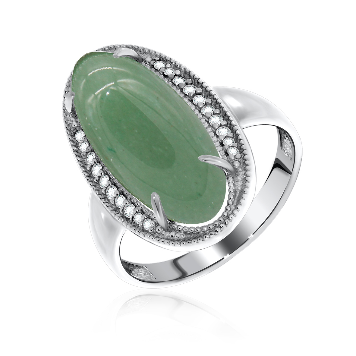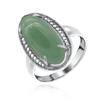 Кольцо для женщин из серебра 925 пробы с нефритом,фианитами из коллекции Династия артикул 1340350938л от компании KRASNOE