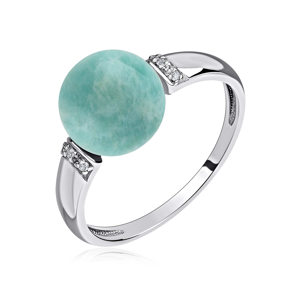 Кольцо для женщин из серебра 925 пробы с амазонитом,фианитами из коллекции Уральские самоцветы артикул 1340371965л от компании KRASNOE
