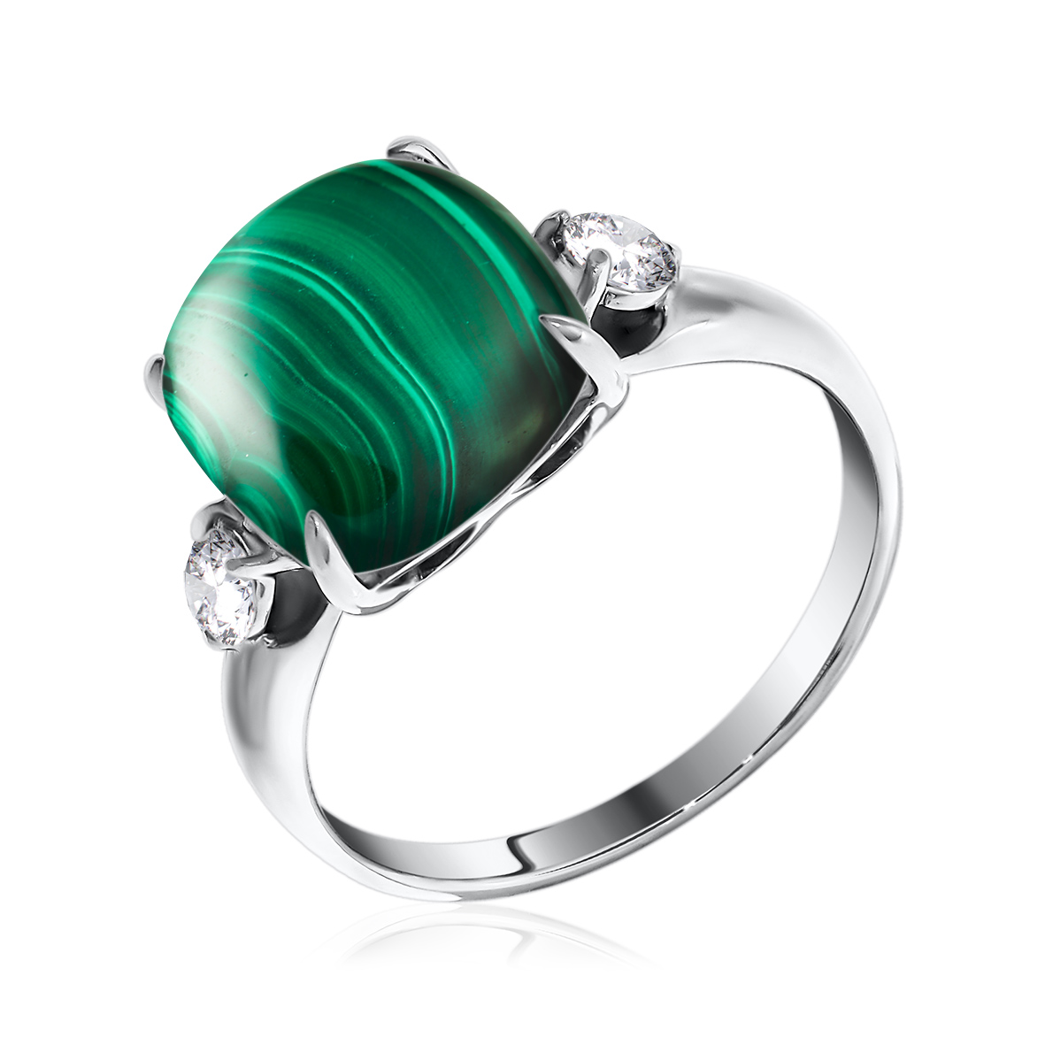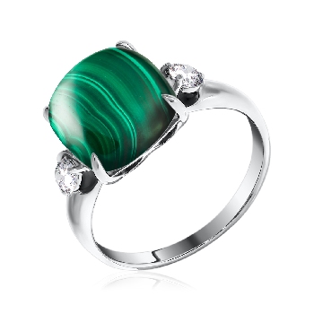 Кольцо для женщин из серебра 925 пробы с малахитом,фианитами из коллекции Уральские самоцветы артикул 1340380380 от компании KRASNOE