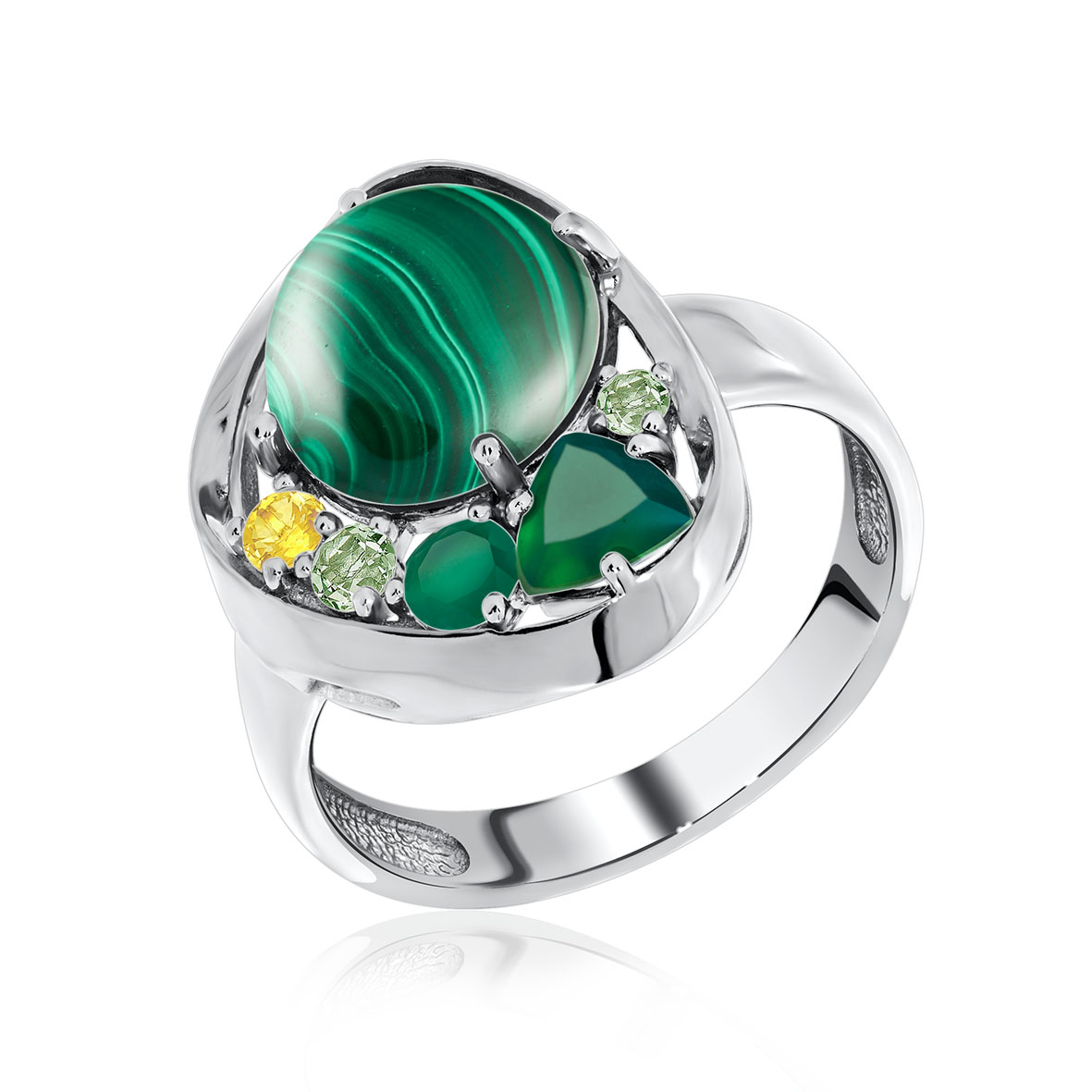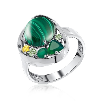 Кольцо для женщин из серебра 925 пробы с ситаллом,малахитом,,нанокристаллом,,фианитами из коллекции Сладкая история артикул 1340381170 от компании KRASNOE
