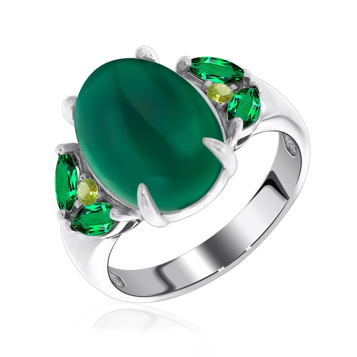 Кольцо для женщин из серебра 925 пробы с агатом,кварцем,,наноизумрудами из коллекции Уральские самоцветы артикул 1340390886-60 от компании KRASNOE