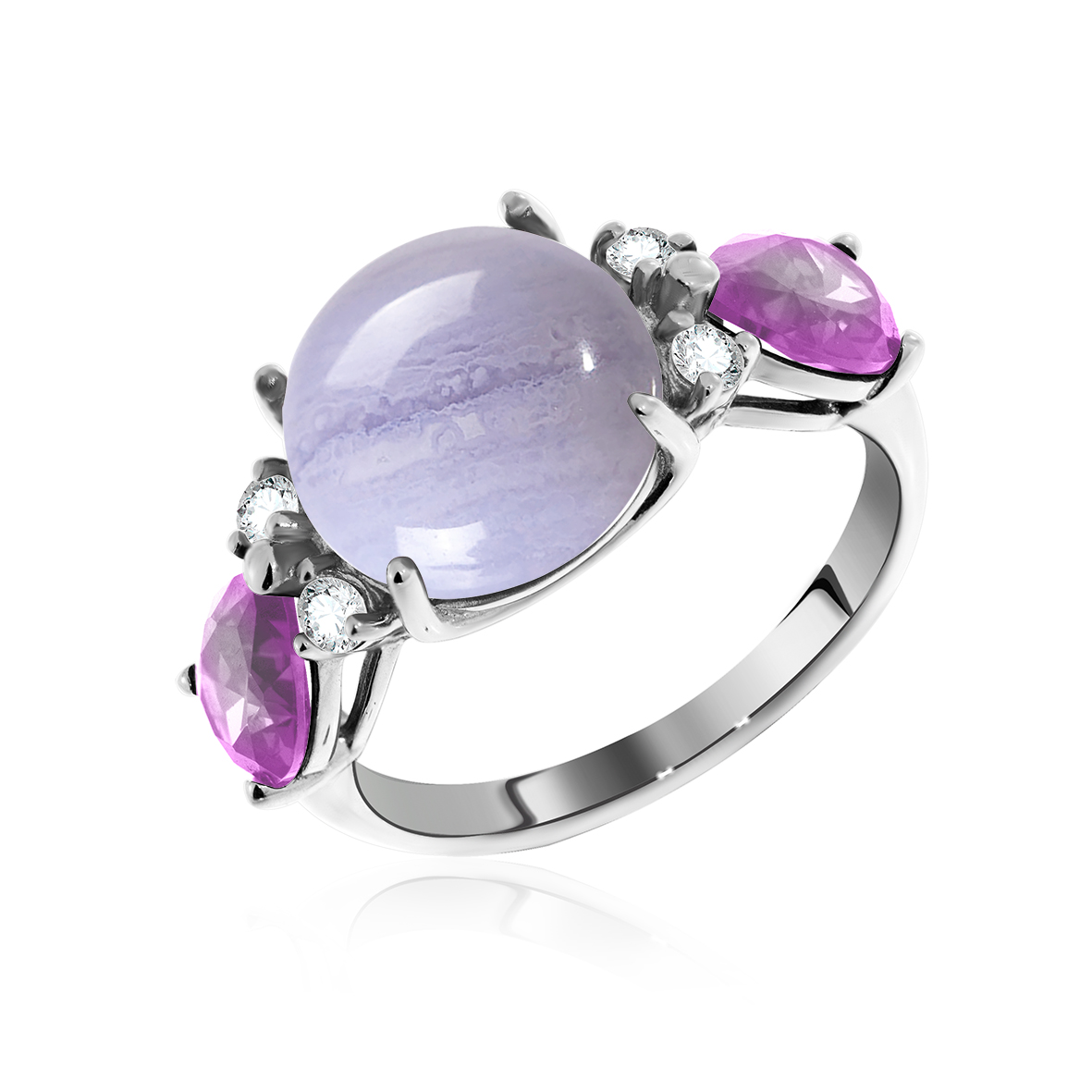 Кольцо для женщин из серебра 925 пробы с агатом,фианитами из коллекции Уральские самоцветы артикул 1340390935-84 от компании KRASNOE