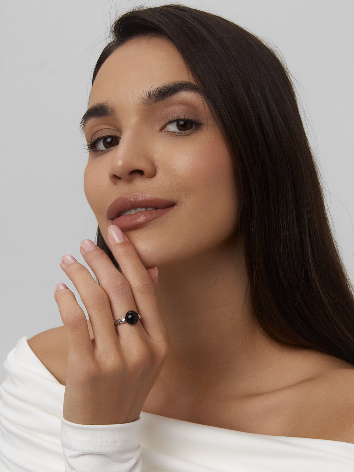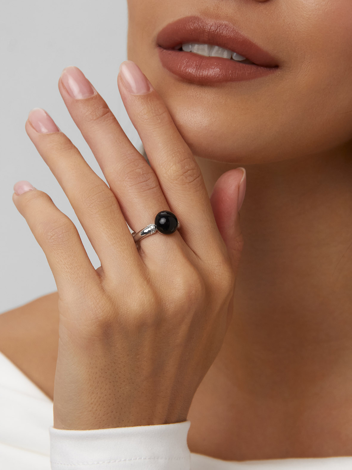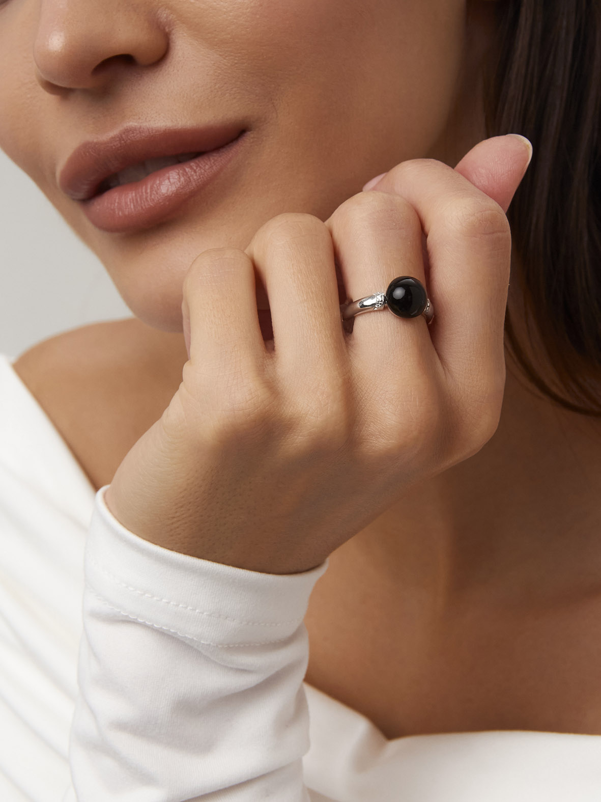 Кольцо для женщин из серебра 925 пробы с агатом,фианитами из коллекции Уральские самоцветы артикул 1340391965л-20 от компании KRASNOE