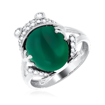 Кольцо для женщин из серебра 925 пробы с агатом,фианитами из коллекции Уральские самоцветы артикул 1340392662л-60 от компании KRASNOE