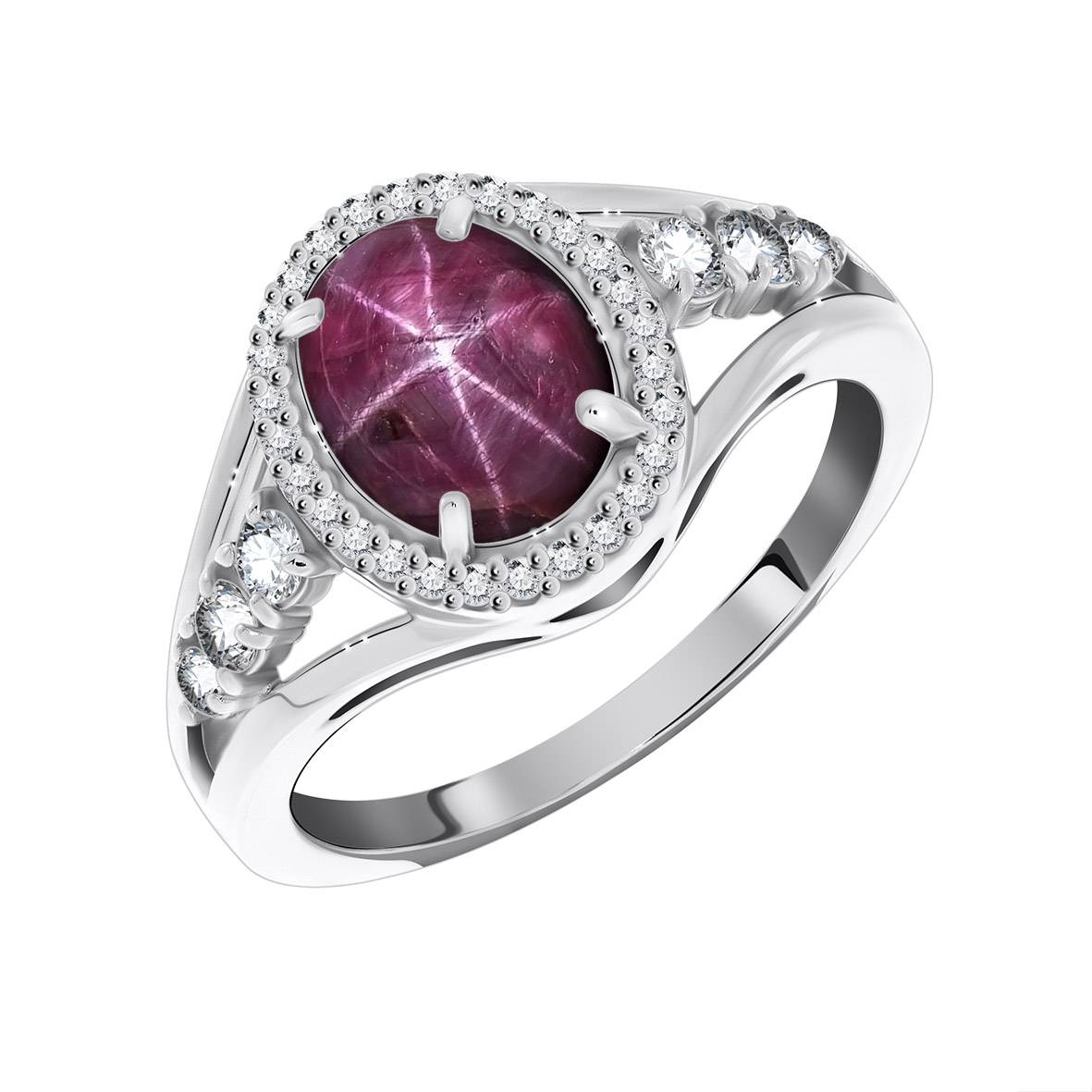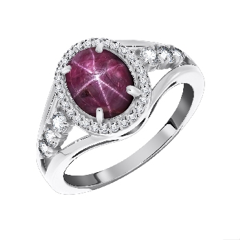 Кольцо для женщин из серебра 925 пробы с звездчатым рубином,фианитами из коллекции Ирида артикул 1340940182л-3 от компании KRASNOE