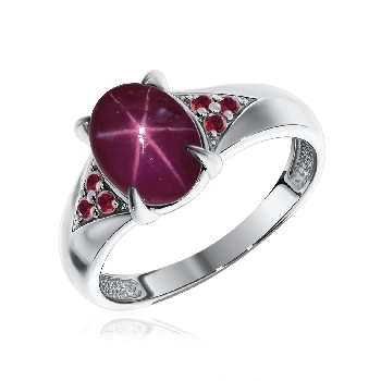Кольцо для женщин из серебра 925 пробы с рубином звездчатым,ситаллами из коллекции Созвездие артикул 1340940372л-37 от компании KRASNOE