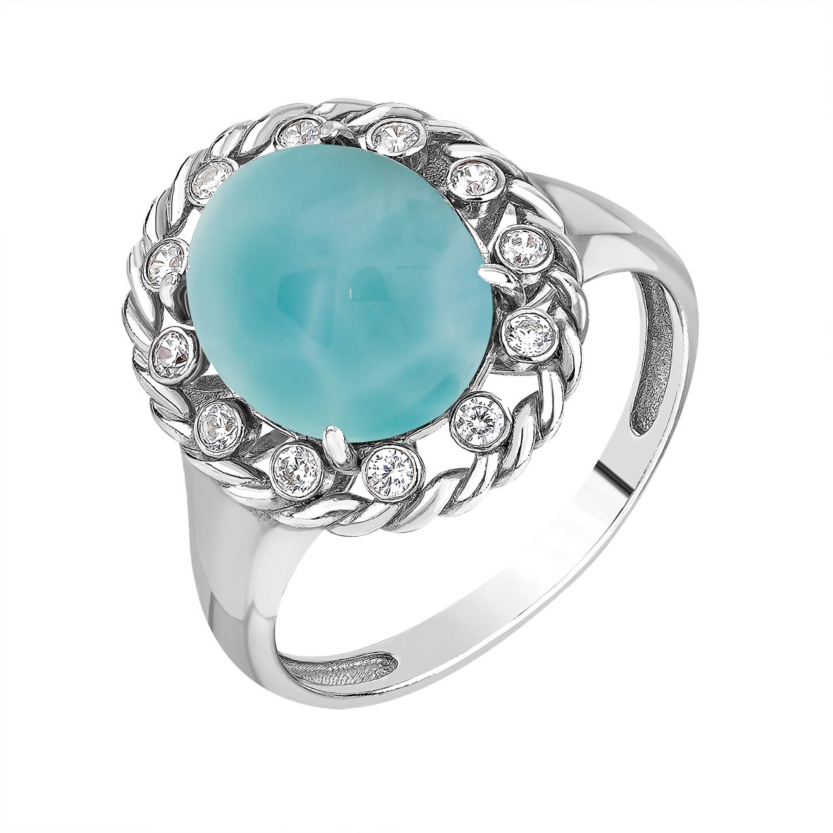 Кольцо для женщин из серебра 925 пробы с ларимаром,фианитами из коллекции Уральские самоцветы артикул 1340Л10973л от компании KRASNOE