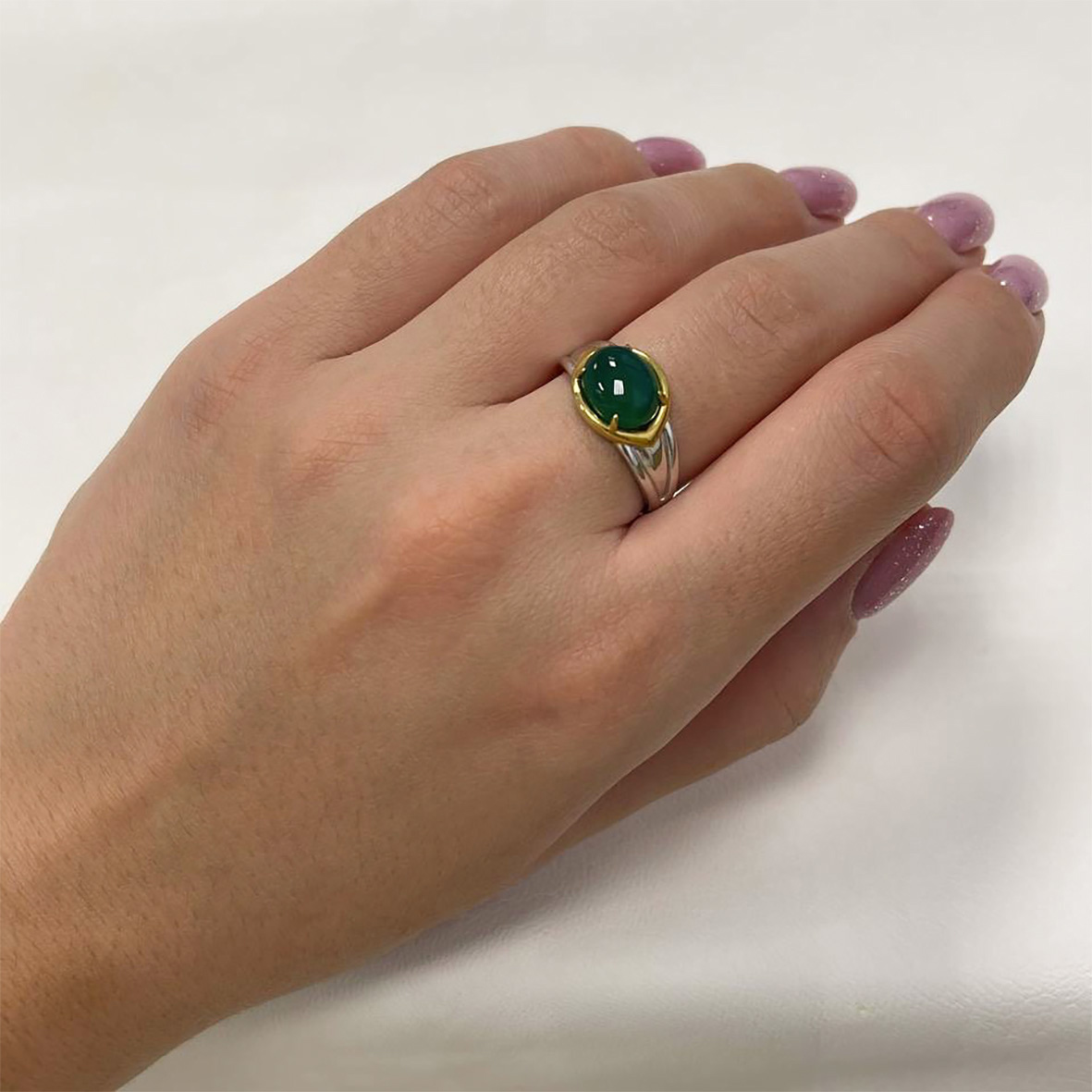 Кольцо из серебра 925 пробы с натуральным зеленым агатом из коллекции "Уральские самоцветы" эффектно смотрится на руке и притягивает внимание окружающих. Кольцо в минималистичном дизайне можно не снимать на протяжении всего дня. Непритязательная классика будет гармонировать со всеми фасонами вашей одежды. Серебряные кольца удобно креативно сочетать друг с другом и с фаланговыми кольцами. В коллекцию ювелирного бренда KRASNOE входят колье-чокеры и галстуки, дорожки, пусеты, джекеты, серьги-трансформеры, а также яркая детская коллекция с эмалью.Размер камня 8*10мм.