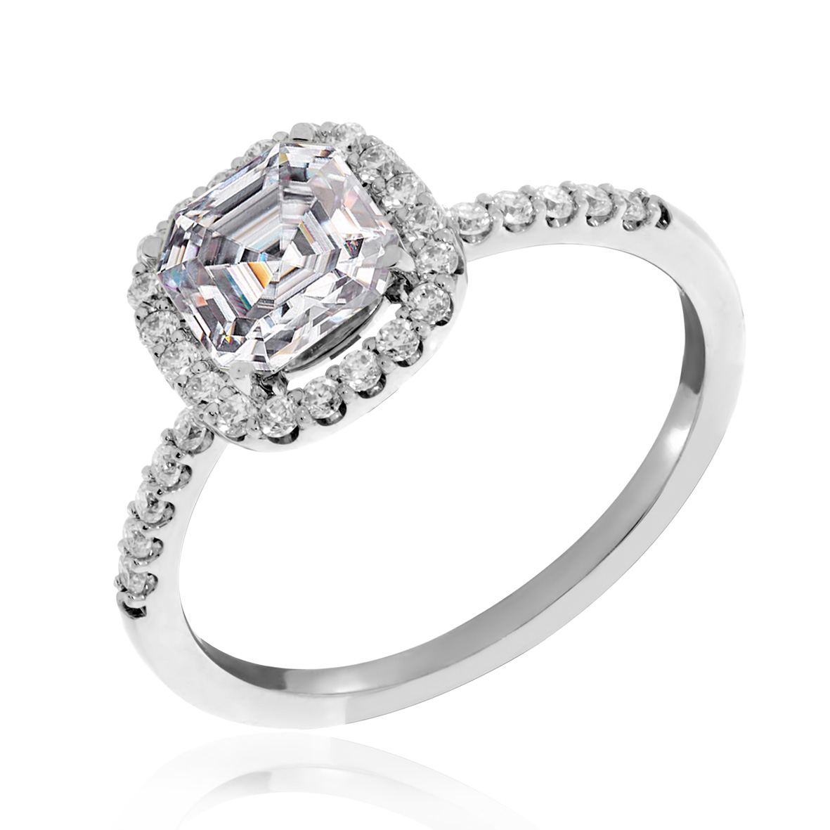 Крупный муассанит огранки ашер по центру, который по желанию клиента может быть заменён бриллиантом. Россыпь мелких камней, создающая дополнительную ценность, эксклюзивность,. Станет великолепным дополнением к вашим чувствам, а простой, но изящный дизайн кольца позволит передать всю искренность подарка.