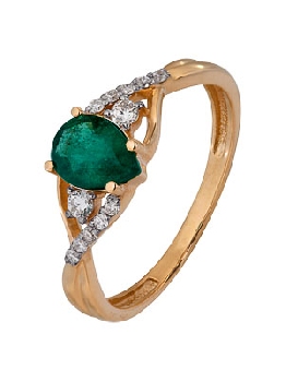 Кольцо для женщин из золота 585 пробы с изумрудом,бриллиантами артикул 1910202487 от компании Алмаз-Холдинг