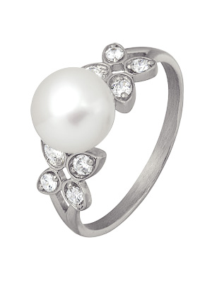 Кольцо для женщин из серебра 925 пробы с жемчугом,фианитами артикул 3887003285 от компании Алмаз-Холдинг