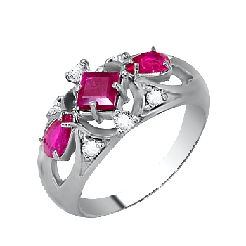 Кольцо из серебра 925 пробы с рубином,натуральными корундами,,фианитами артикул 3987002454-10 от компании Алмаз-Холдинг