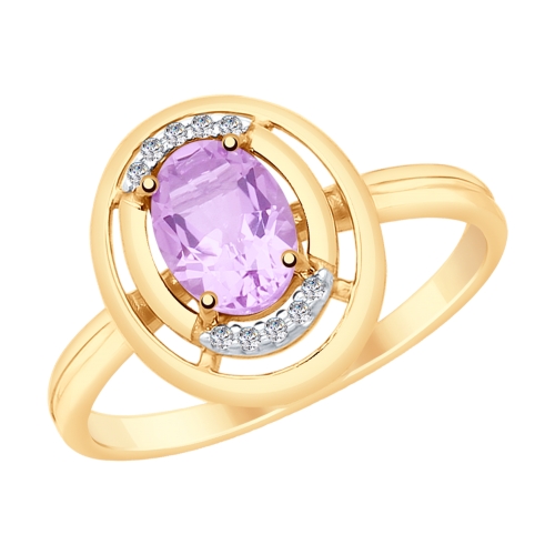 Кольцо из золота 585 пробы с аметистом артикул 715349