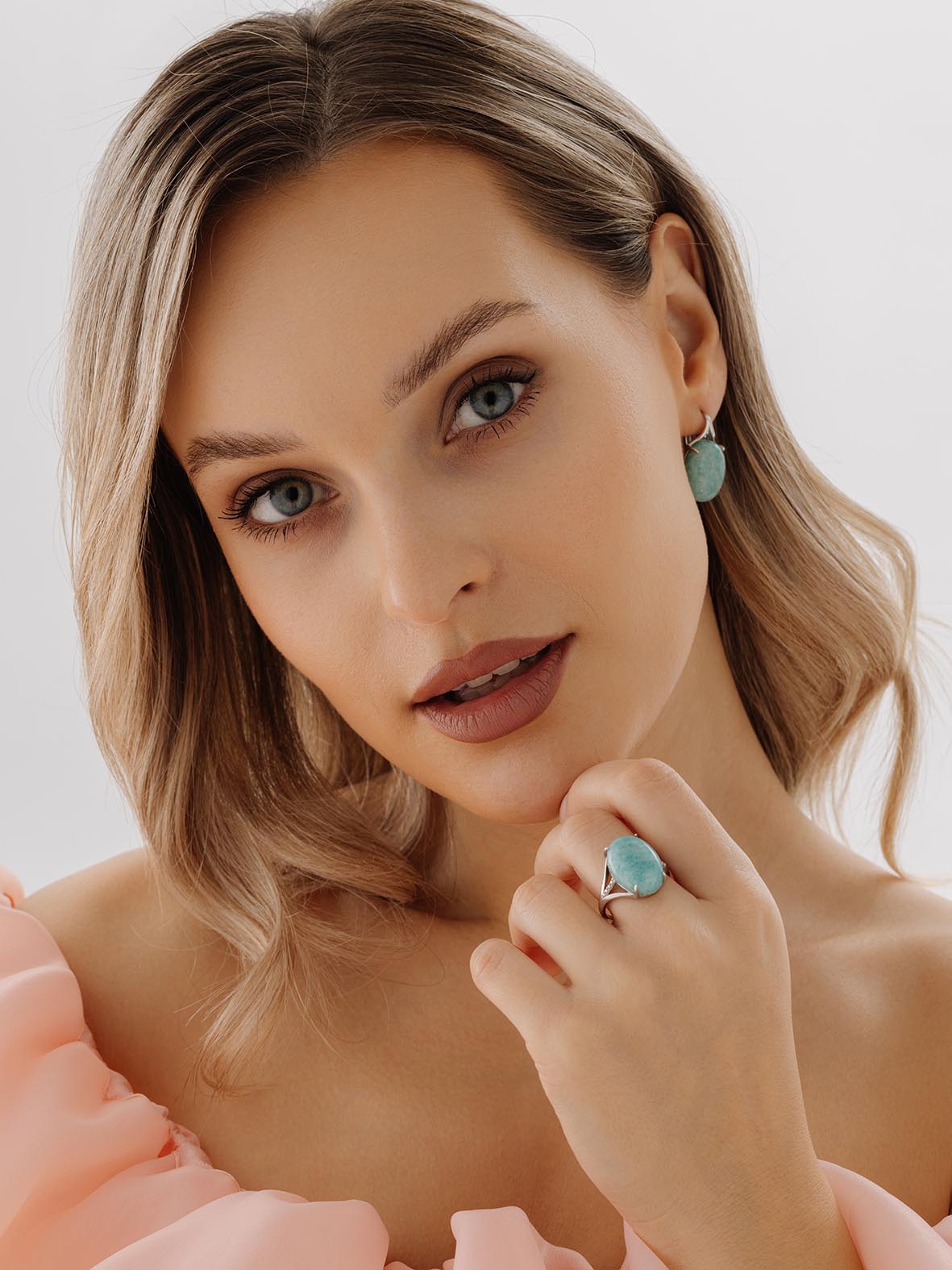 Кольцо для женщин из серебра 925 пробы с амазонитом из коллекции Уральские самоцветы артикул 1340375955 от компании KRASNOE