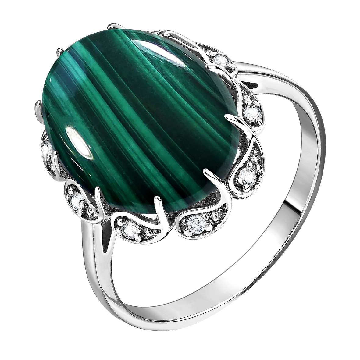 Кольцо для женщин из серебра 925 пробы с малахитом,фианитами из коллекции Династия артикул 1340385114л от компании KRASNOE