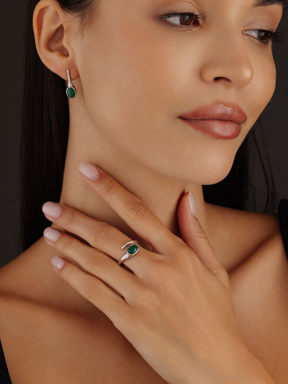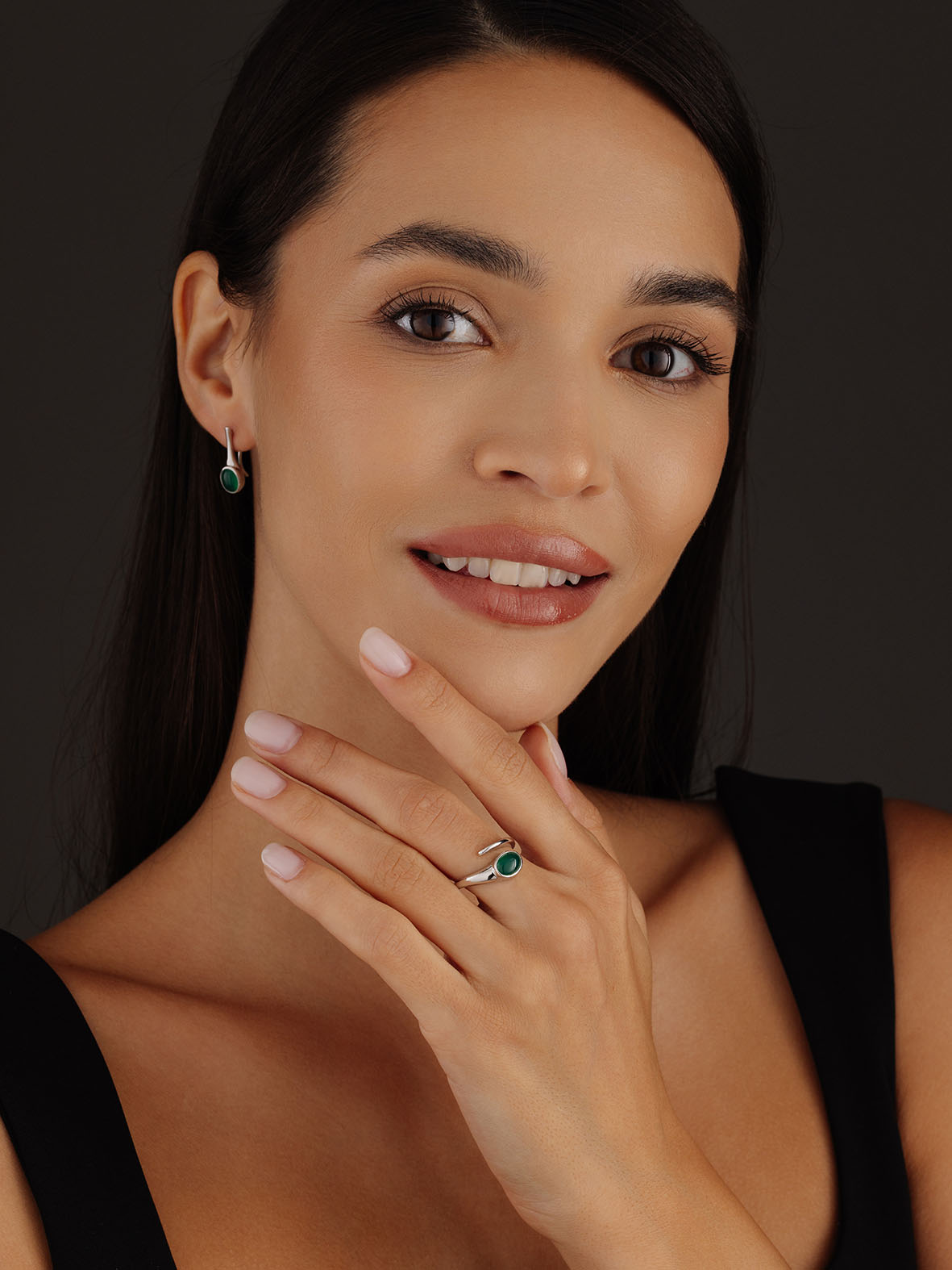 Кольцо для женщин из серебра 925 пробы с агатом из коллекции Dew point артикул 1340395035-60 от компании KRASNOE